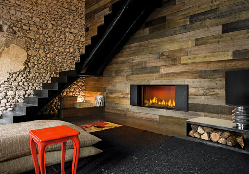Облицовка камина из натурального сланца и окрашенной стали с эффектом ржавчины. Подходит для каминов Forma 95 Wood, Forma 115 Wood, Forma 95 Gas, Forma 115 Gas.